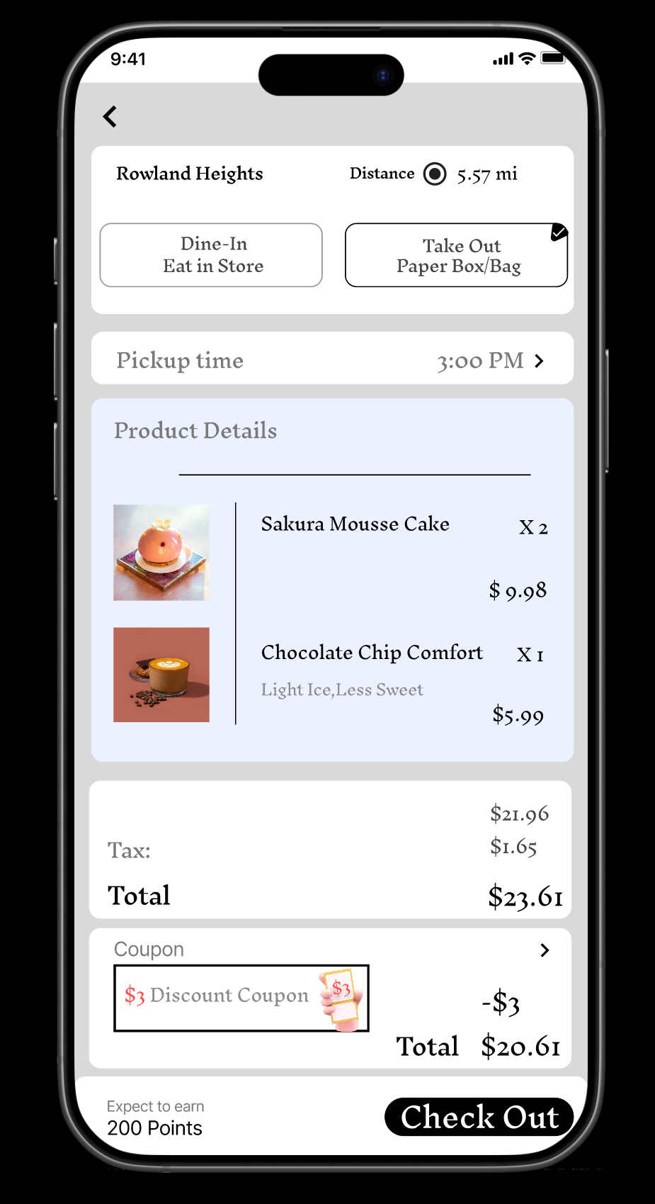 To solve this, I surfaced reward information earlier in the user journey, added a “Rewards” section to the tab bar, and made coupons visible on the checkout page. Users are now prompted when they’re eligible for discounts—encouraging engagement and boosting satisfaction.