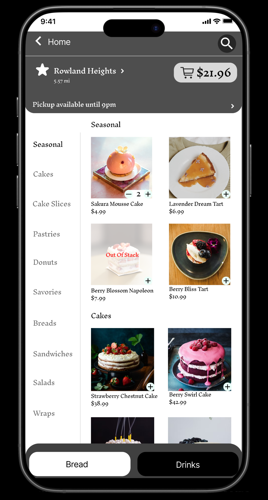 This project aims to design a mobile ordering app that makes the bakery experience faster, easier, and more convenient for customers. By allowing users to place orders in advance through their phones, the app helps reduce wait times and simplify the ordering process—especially during busy hours. One of the key goals is to provide real-time inventory updates, so that sold-out items are clearly marked. This feature prevents users from wasting time searching for unavailable products once they arrive at the store, improving both satisfaction and efficiency. Ultimately, this app empowers customers to order with confidence and helps bakeries better serve their customers with clarity and care.