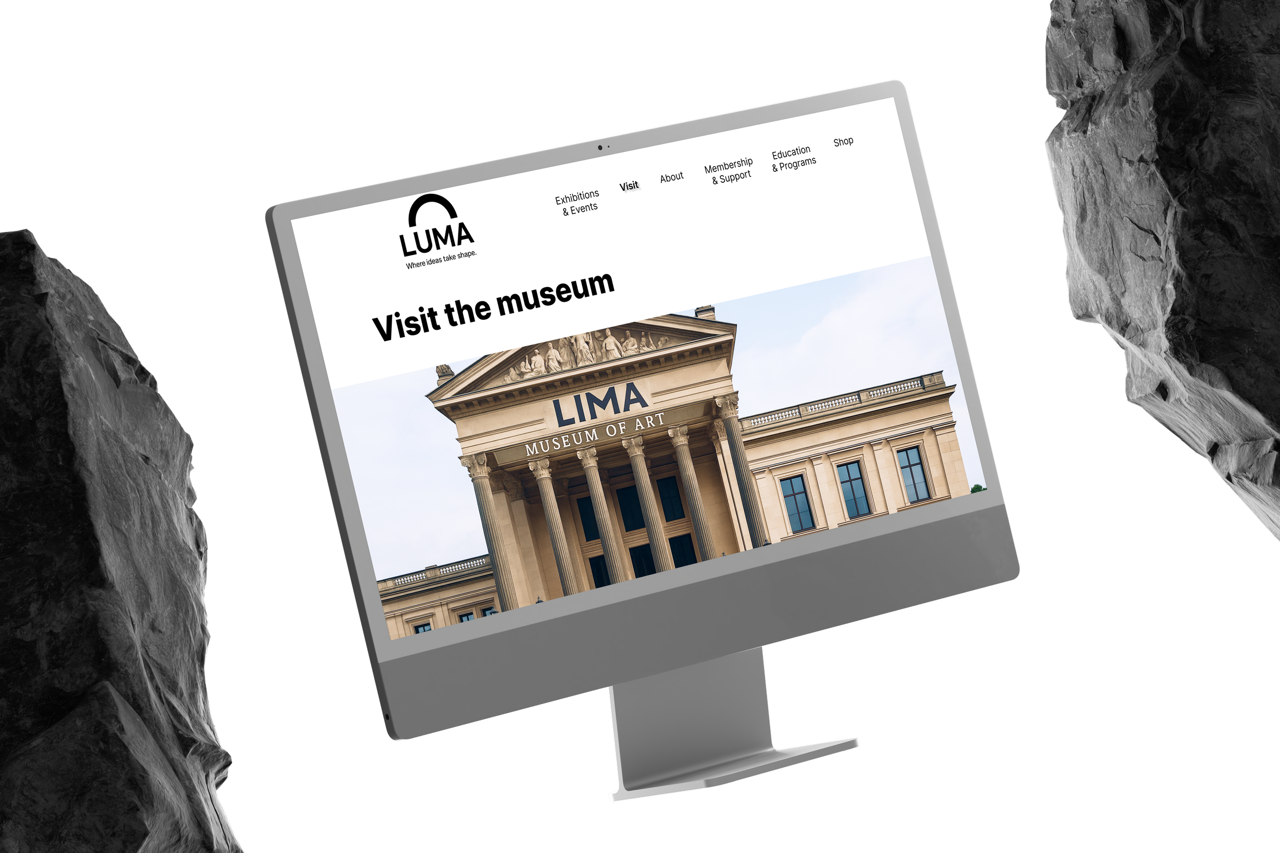The LUMA logo, featuring a bold arch, symbolizes emergence and creative formation. It anchors the design system while echoing the museum's theme of shaping abstract ideas into concrete experiences.