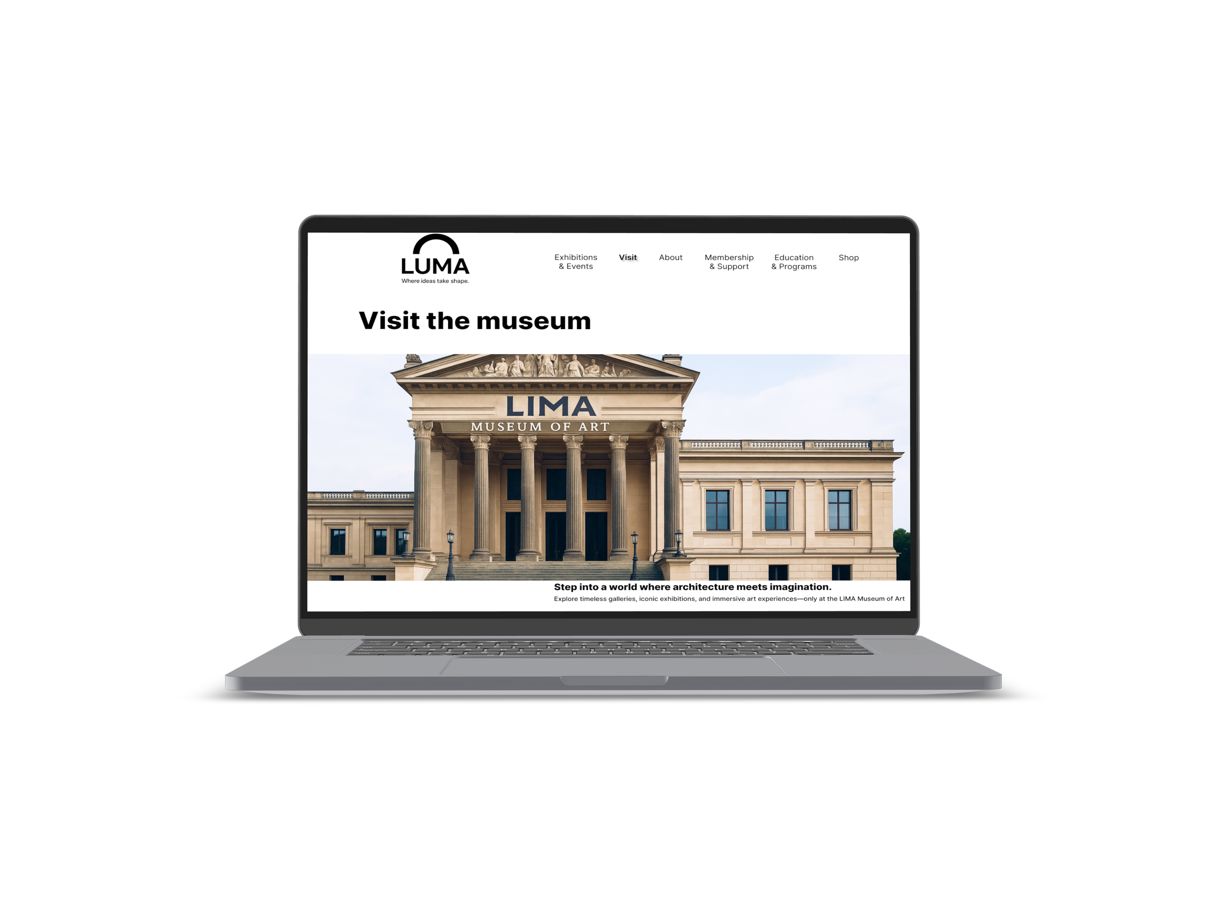 This project is a self-initiated UX challenge focused on creating a fictional museum website—LUMA Museum—from the ground up. With no existing brand or structure, I had full creative freedom to define the museum’s identity, purpose, and digital experience.